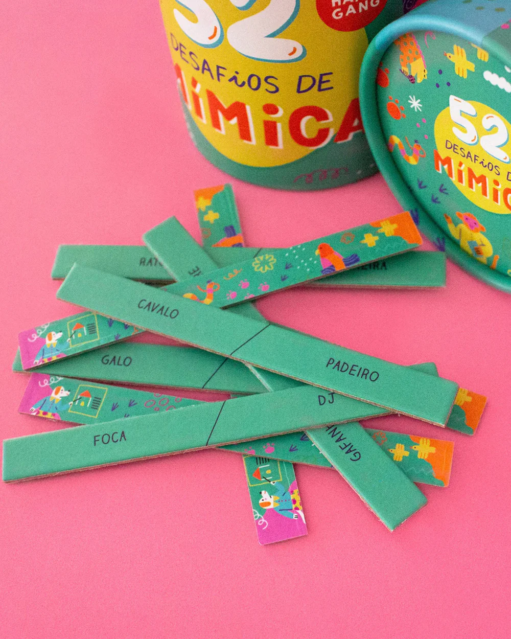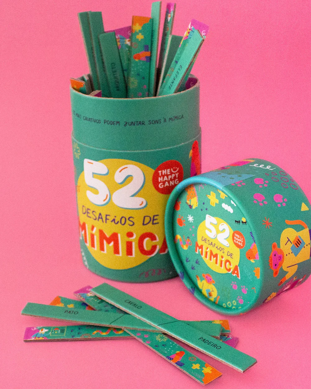 O Jogo “52 Desafios de Mímica”, do The Happy Gang, promete diversão e gargalhadas ao juntar animais e profissões em desafios hilariantes. Com 52 cartões ilustrados por Ana Seixas, o jogo é simples: tire um cartão e siga a sugestão. Quem adivinha mais rápido? Ideal para famílias e amigos, proporciona memórias incríveis.