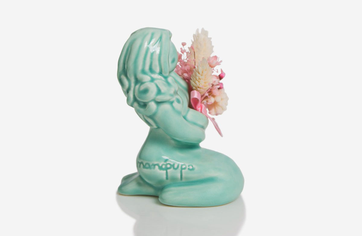 A menina e as flores – Rosa Malva – peça cerâmica produzida manualmente e em Portugal.