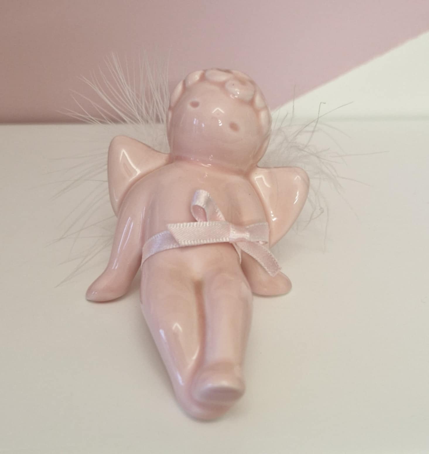 Anjinho a enviar beijinho – Rosa Malva – peça cerâmica produzida manualmente e em Portugal.