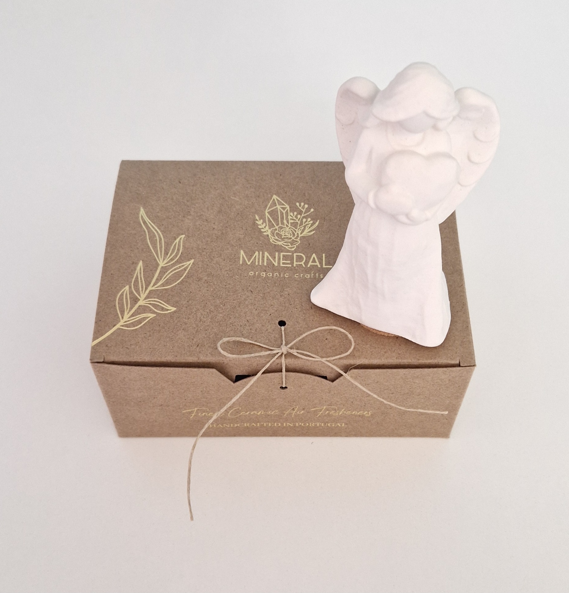 Anjo 3D coração branco – Cerâmica Perfumada da Mineral Organic Crafts.