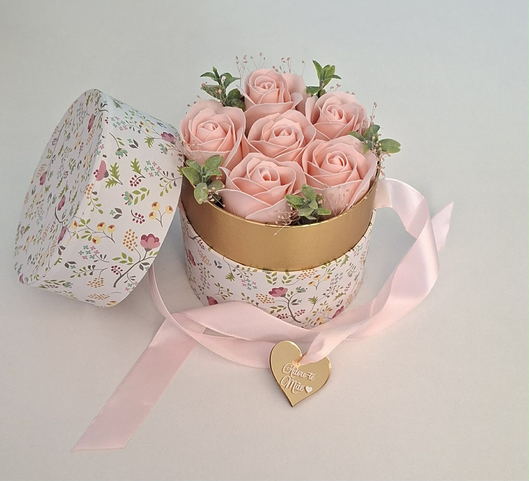 Caixa com rosas de sabão – Adoro-te Mãe