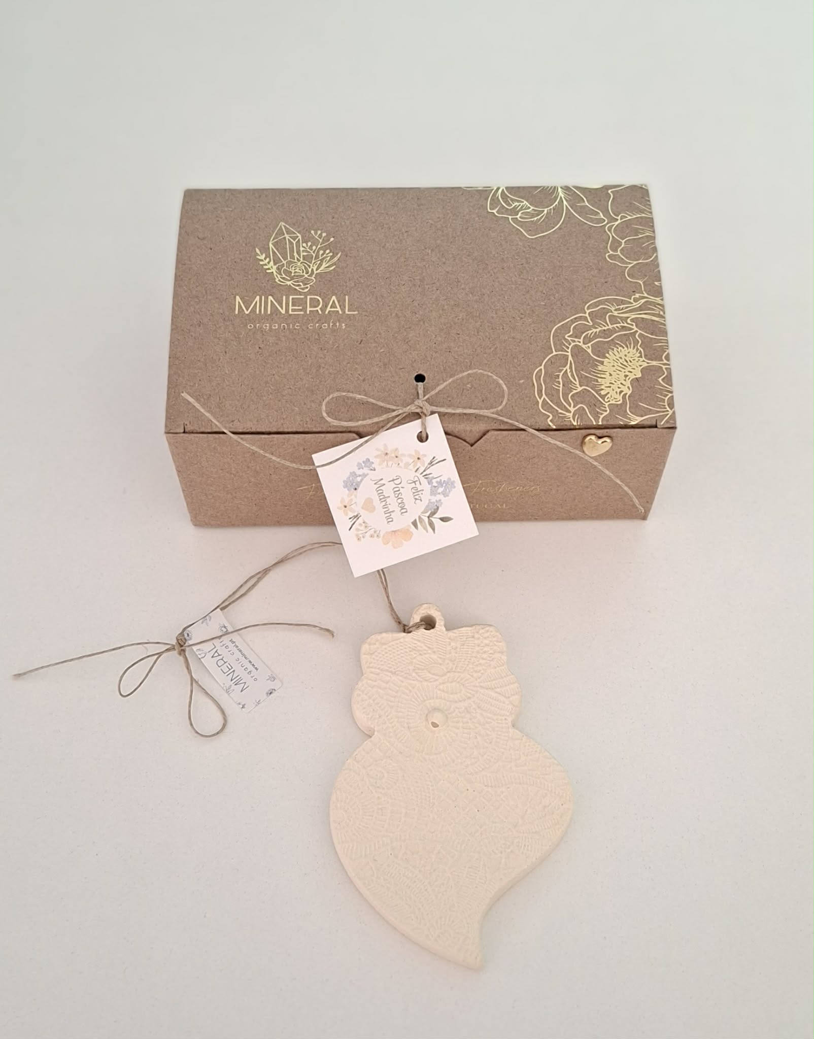 Todas as peças da MINERAL Organic Crafts são cuidadosamente embrulhadas em caixa individual de papel 100% reciclado.