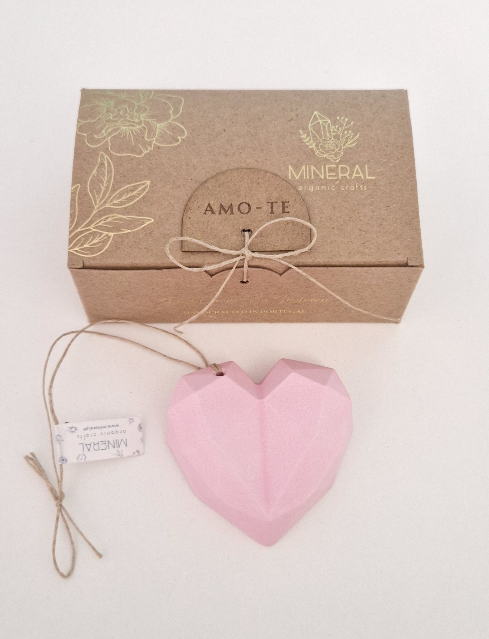 Coração geométrico rosa – Cerâmica Perfumada da Mineral Organic Crafts.