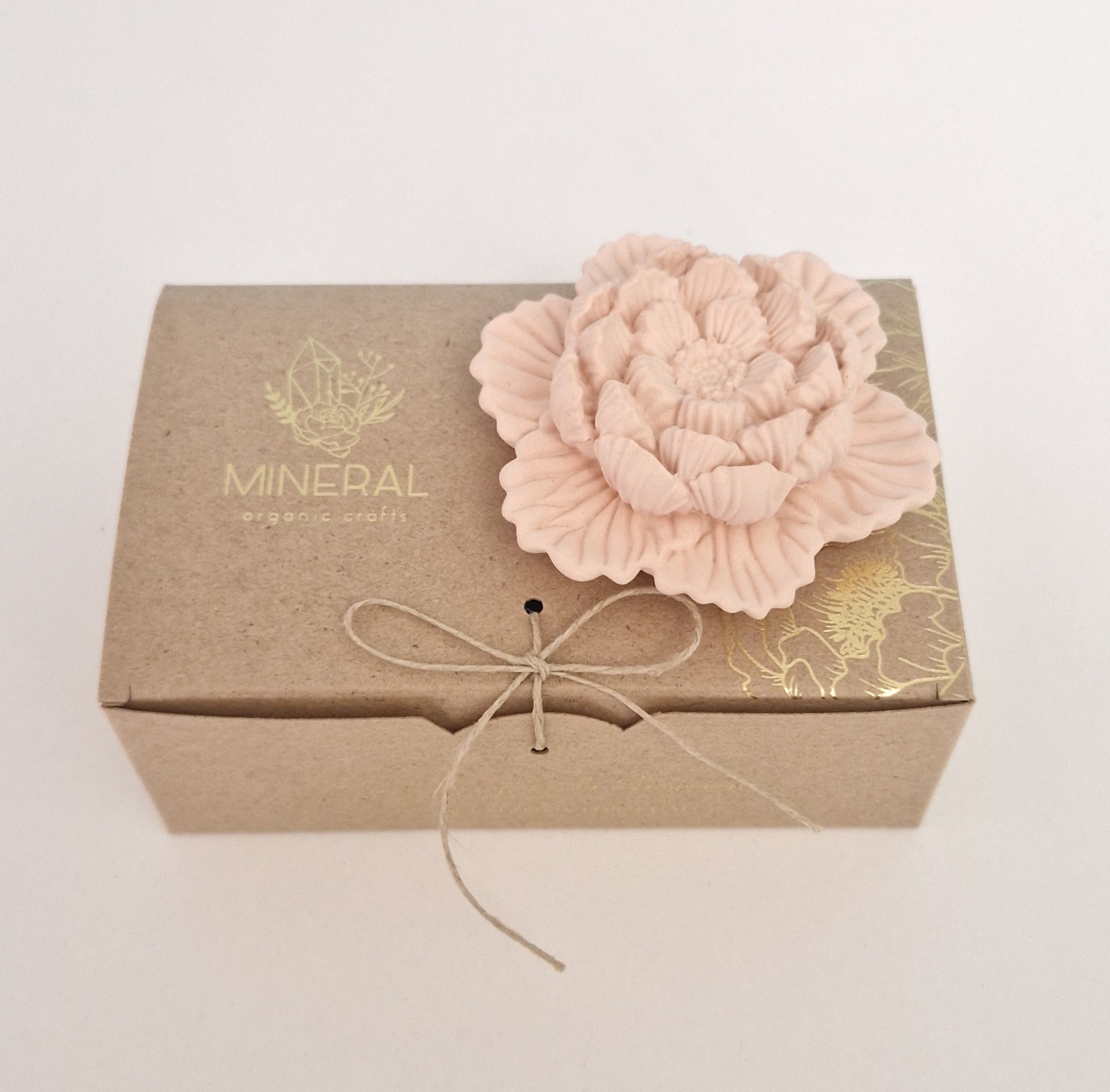 Todas as peças da MINERAL Organic Crafts são cuidadosamente embrulhadas em caixa individual de papel 100% reciclado.