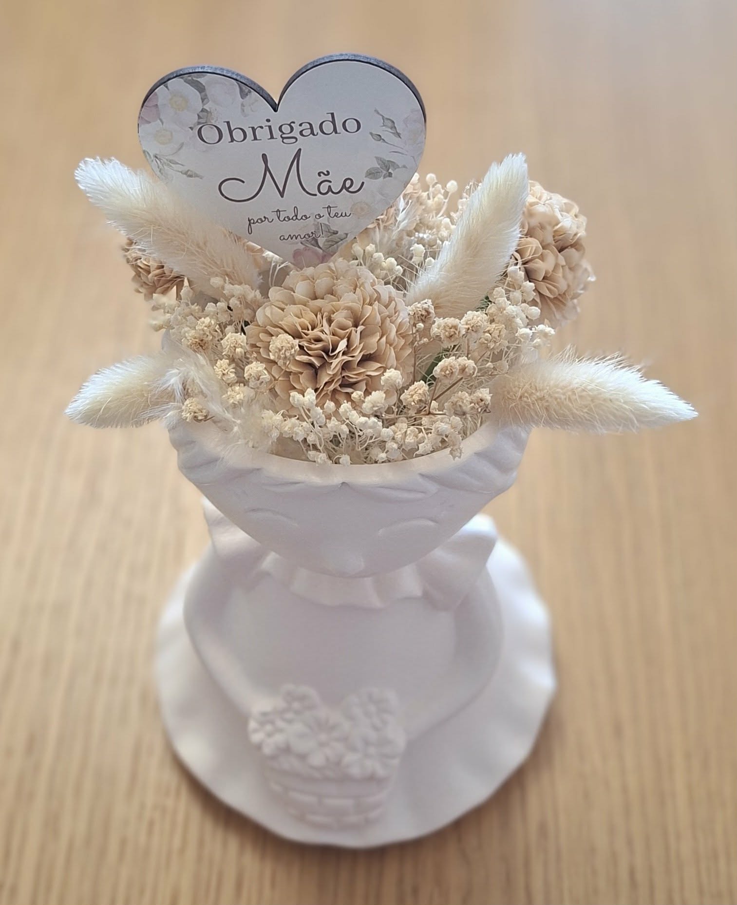 Jarra menina com flores – Mãe + Obrigado Mãe por todo o teu amor.