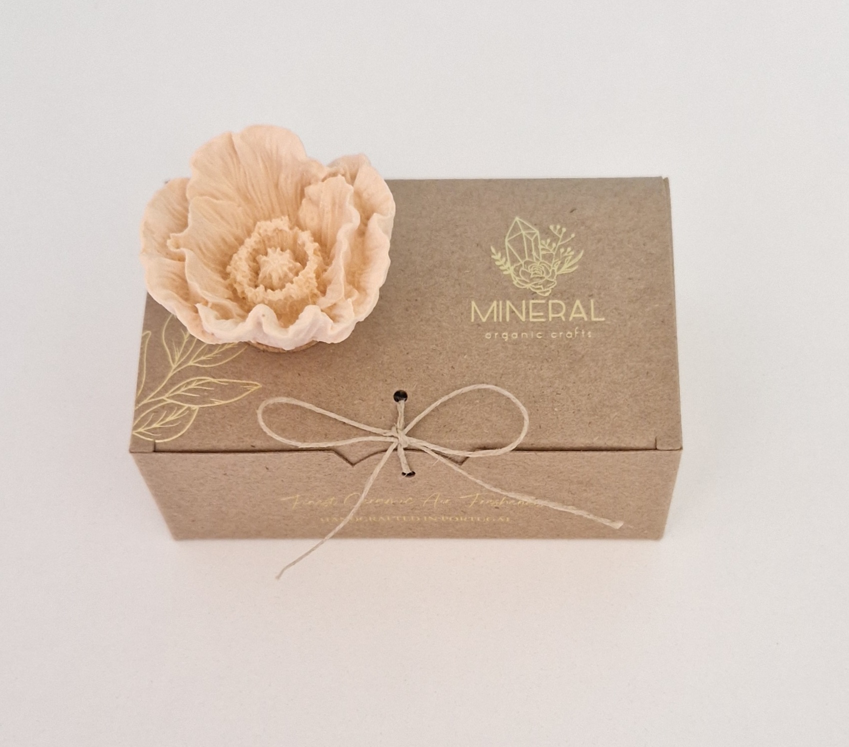 Todas as peças da MINERAL Organic Crafts são cuidadosamente embrulhadas em caixa individual de papel 100% reciclado.