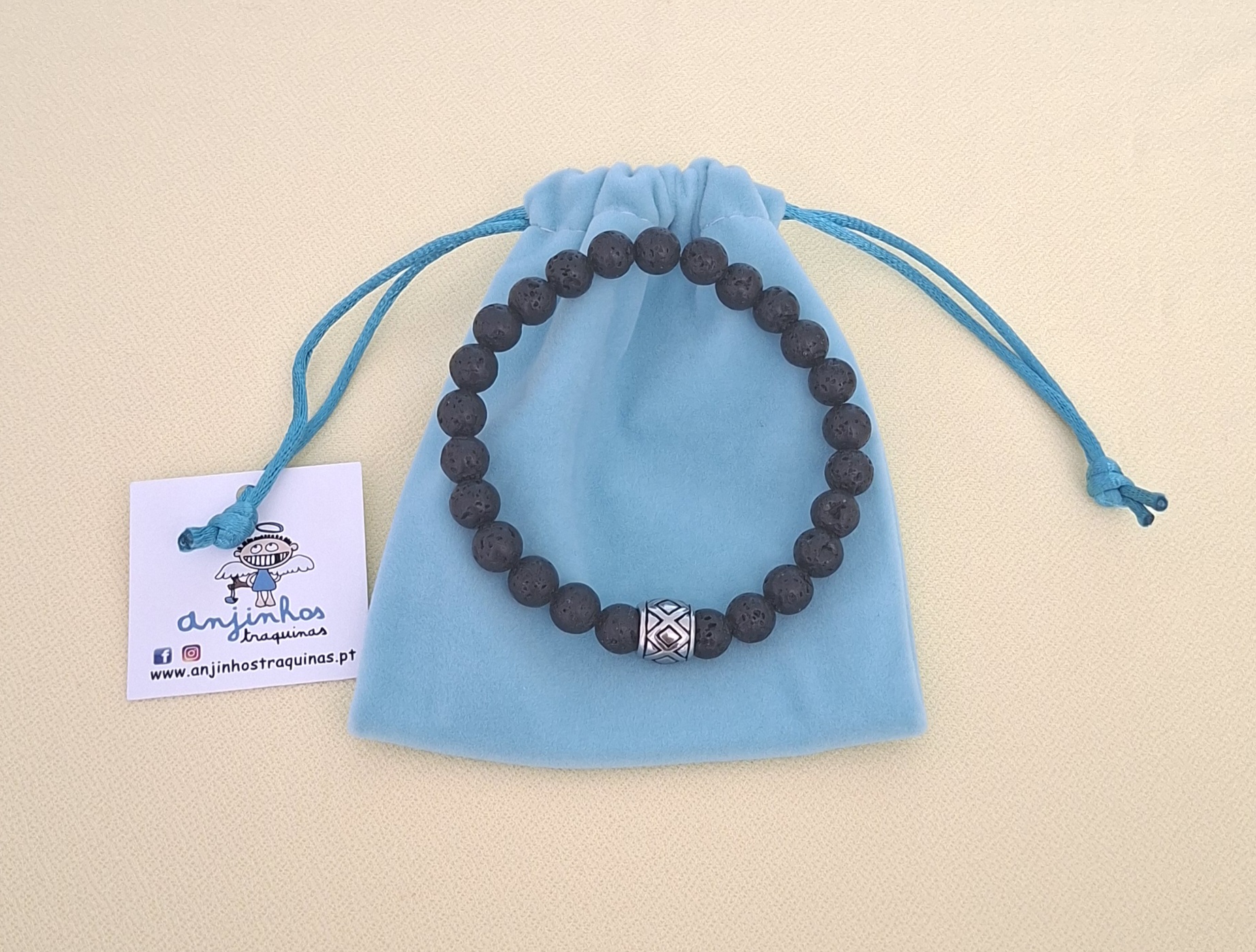 Pulseira aço pedras vulcânicas.