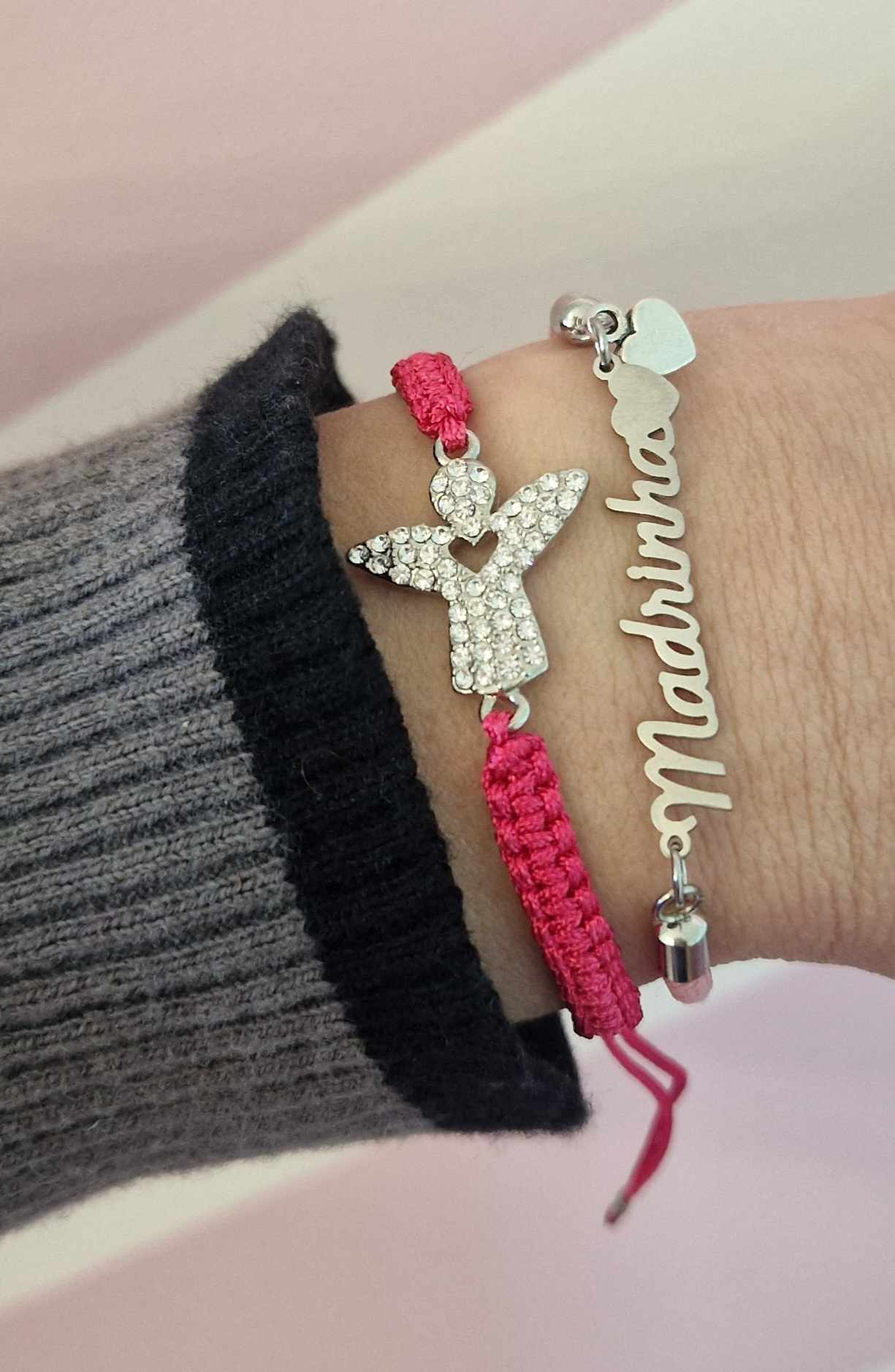 Pulseira Madrinha em aço ajustável ao pulso.