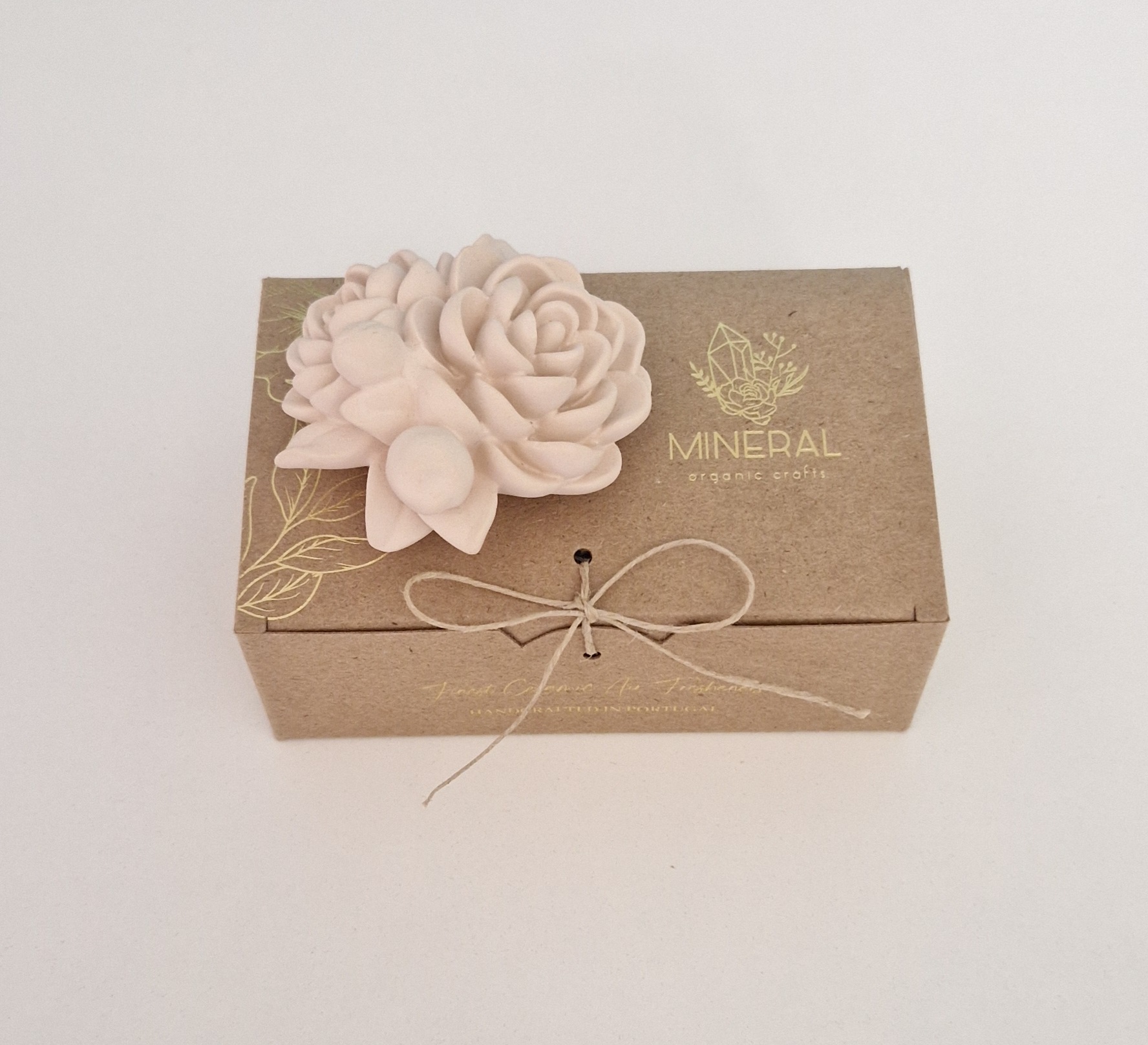 Todas as peças da MINERAL Organic Crafts são cuidadosamente embrulhadas em caixa individual de papel 100% reciclado.